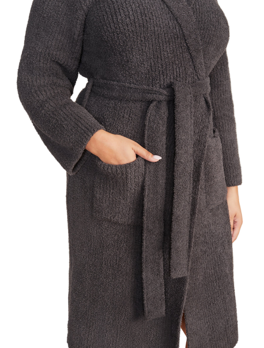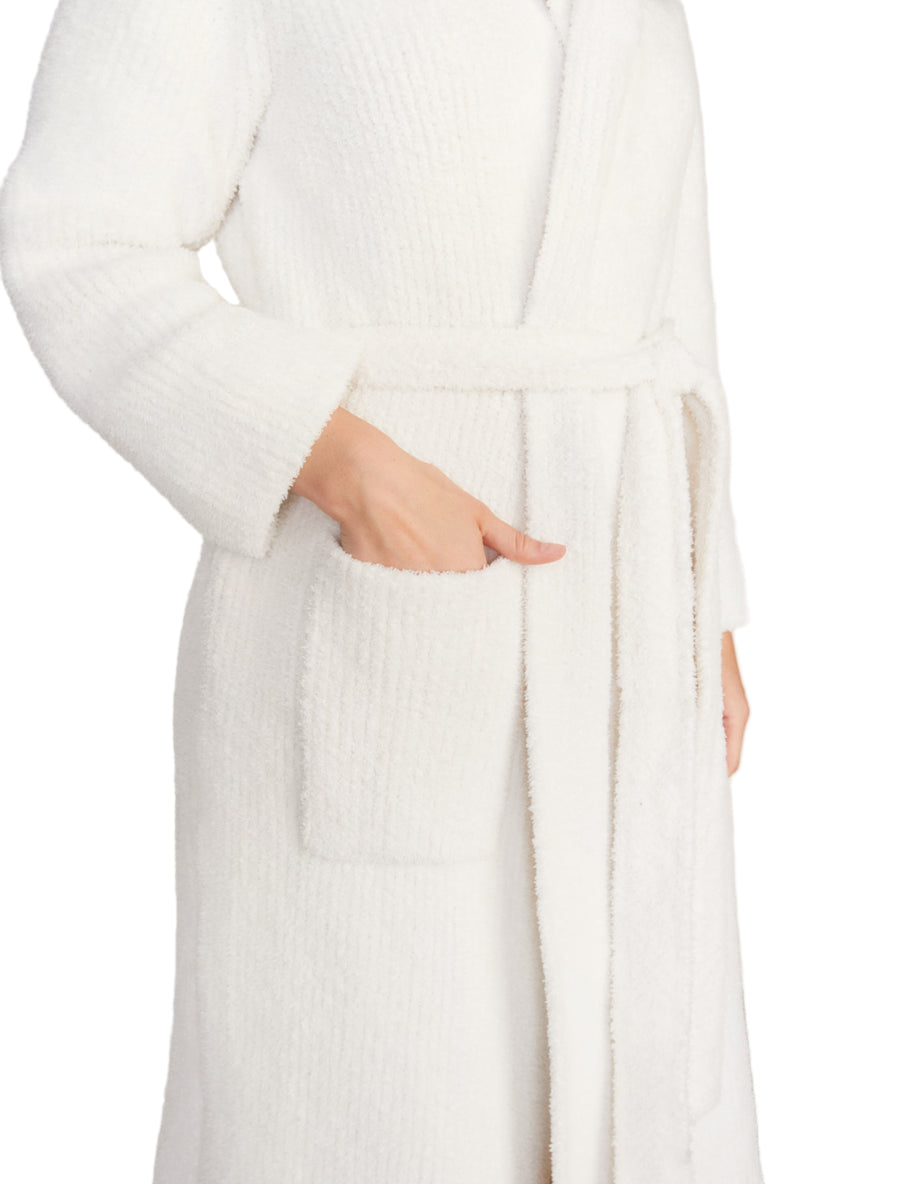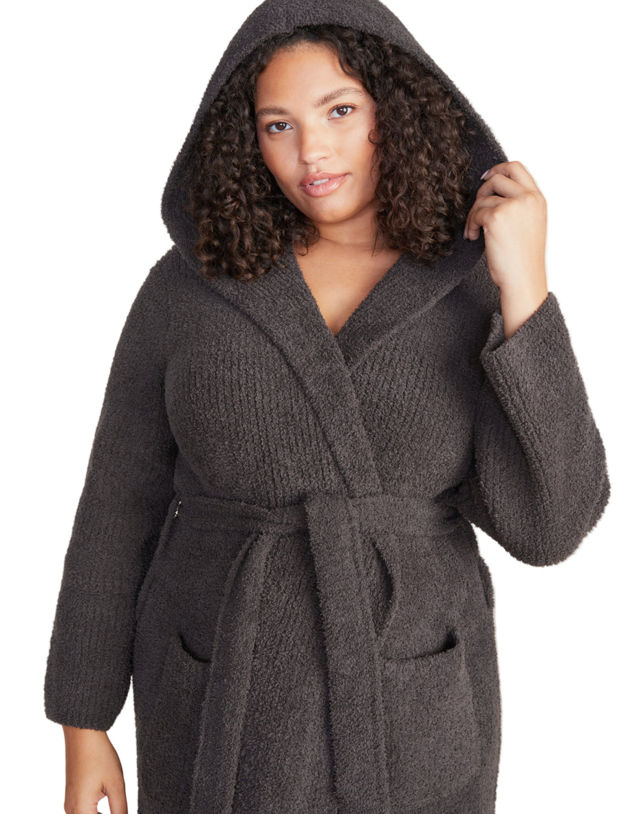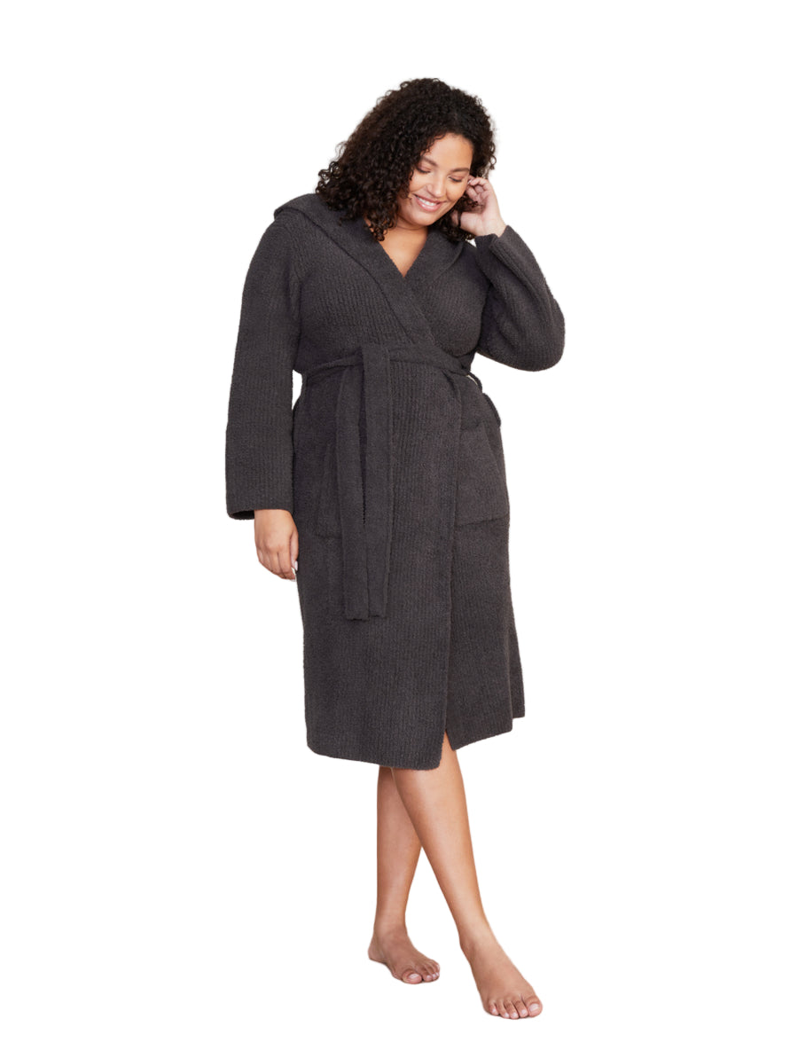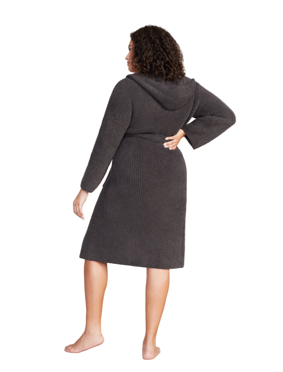 Barefoot Dreams Women’s Cozychic Ribbed Hooded Robe – Soft Plush 100% Microfiber Loungewear