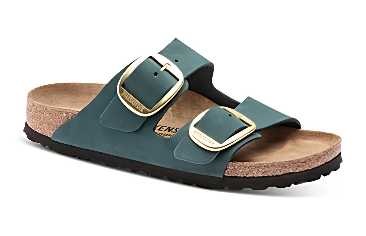 The Birkenstock Arizona Big Buckle in Dark Teal Nubuck combines timeless ergonomic design with a sophisticated aesthetic. The bold buckles and rich dark teal tone elevate the traditional Arizona silhouette. while the suede-lined cork footbed and EVA sole ensure all-day comfort and support.