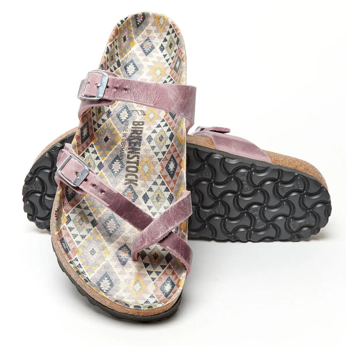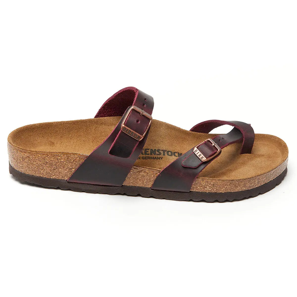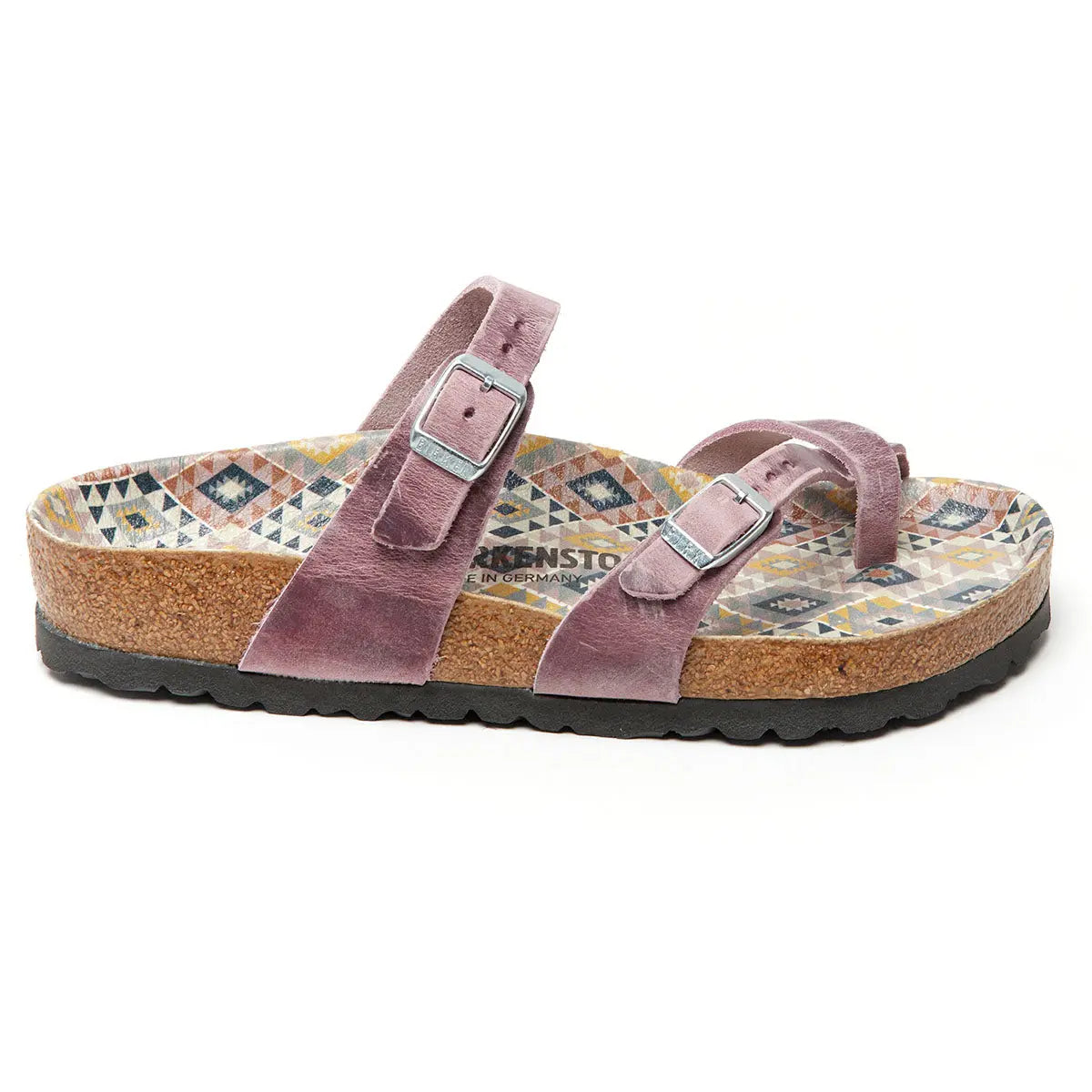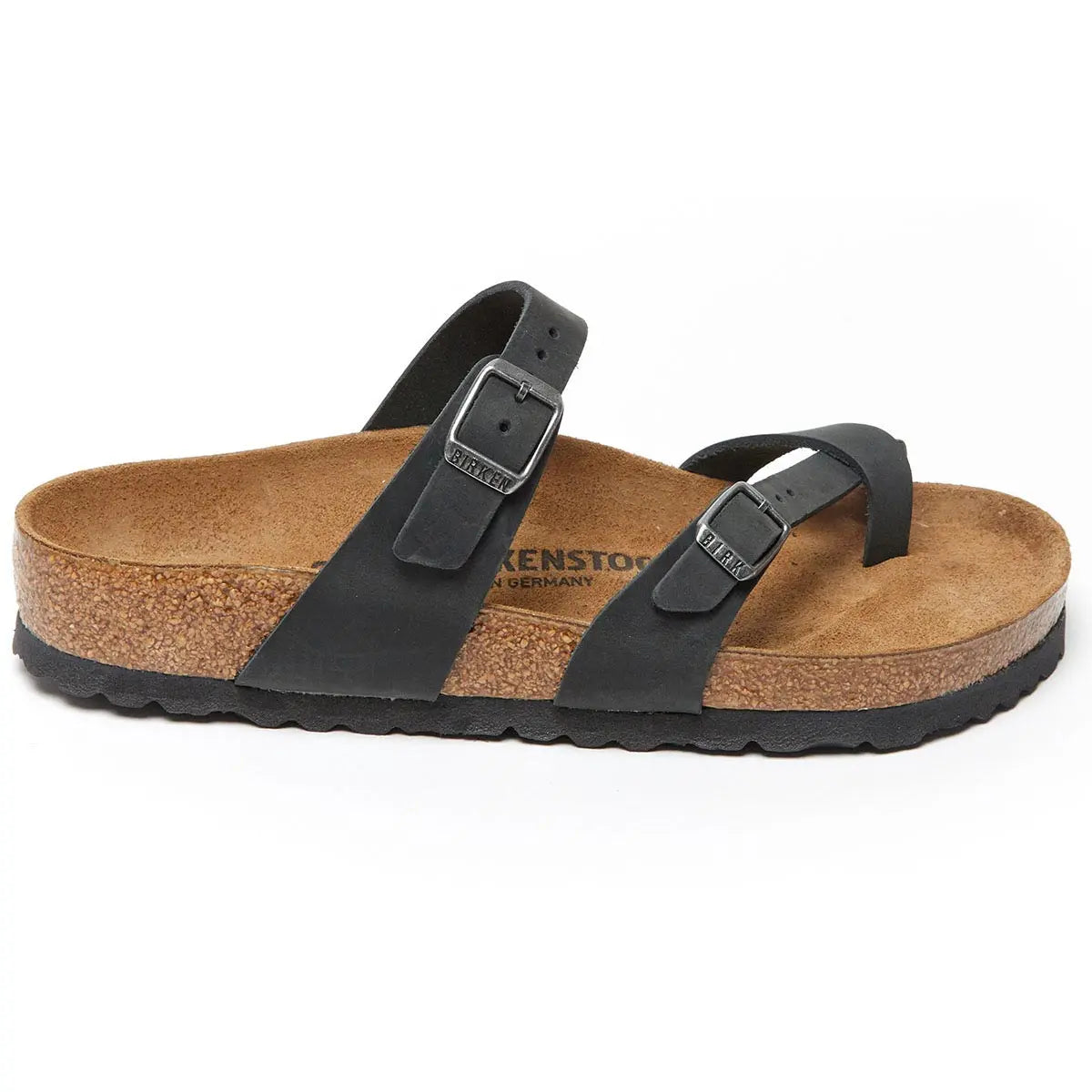 The Mayari from Birkenstock – an elegantly comfortable sandal with adjustable. crisscrossing straps that form a single loop around the toe. Featuring a microfiber footbed liner. The upper is made from oiled nubuck leather.