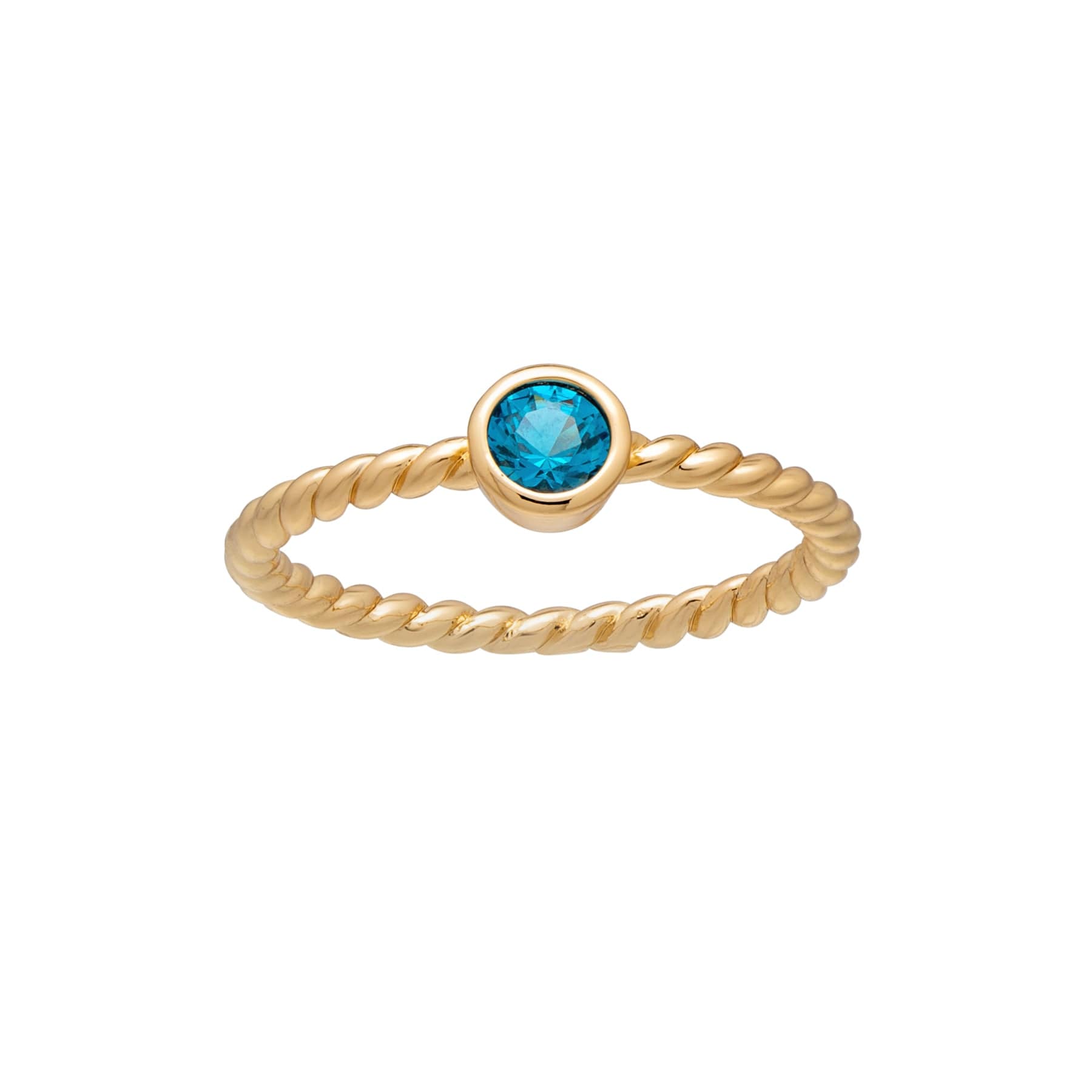 callura Goldtone Twisted CZ Birthstone Solitaire Ring ?C March Aquamarine