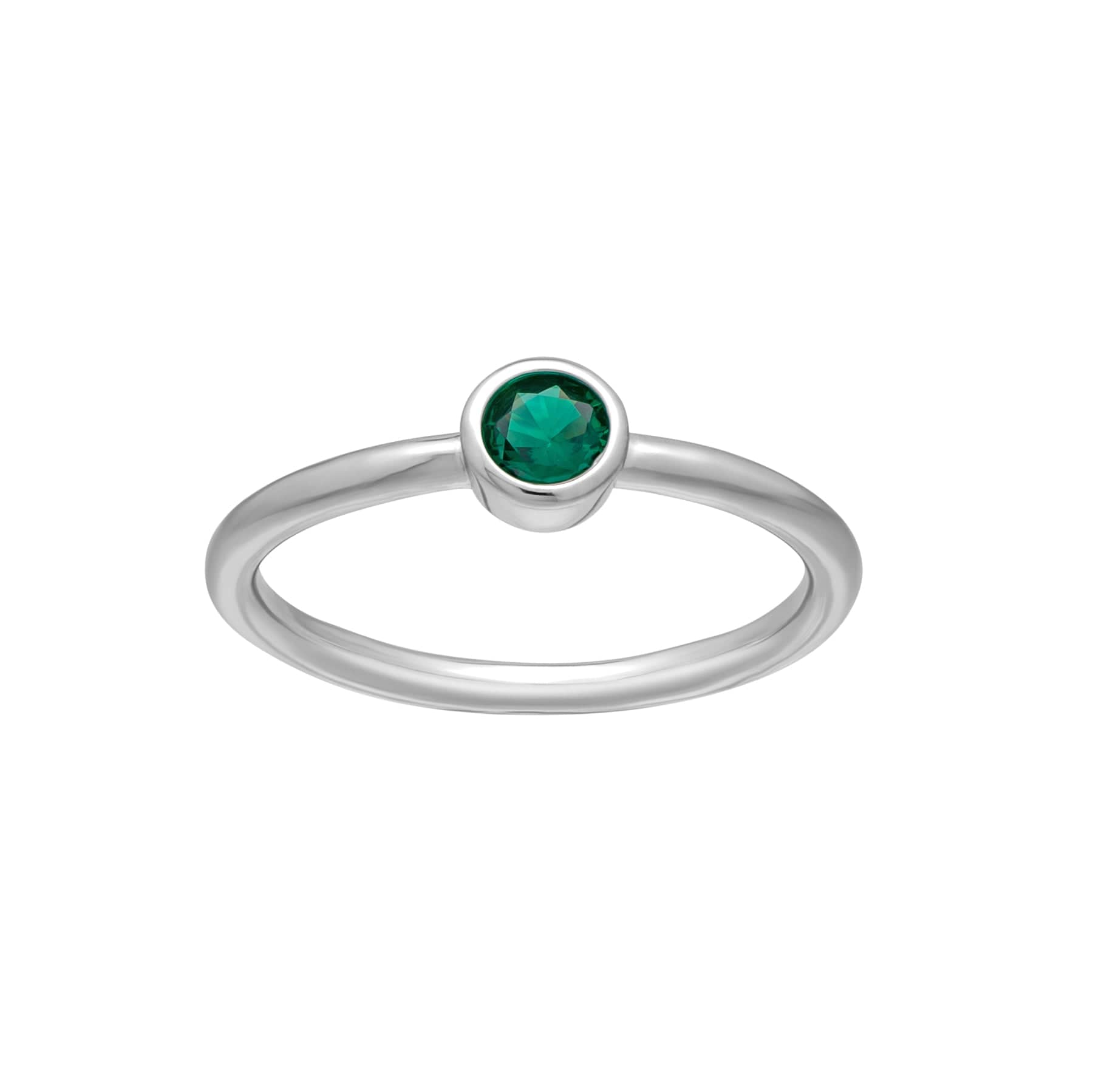 callura Silvertone CZ Birthstone Stackable Solitaire Ring ?C May Emerald Green