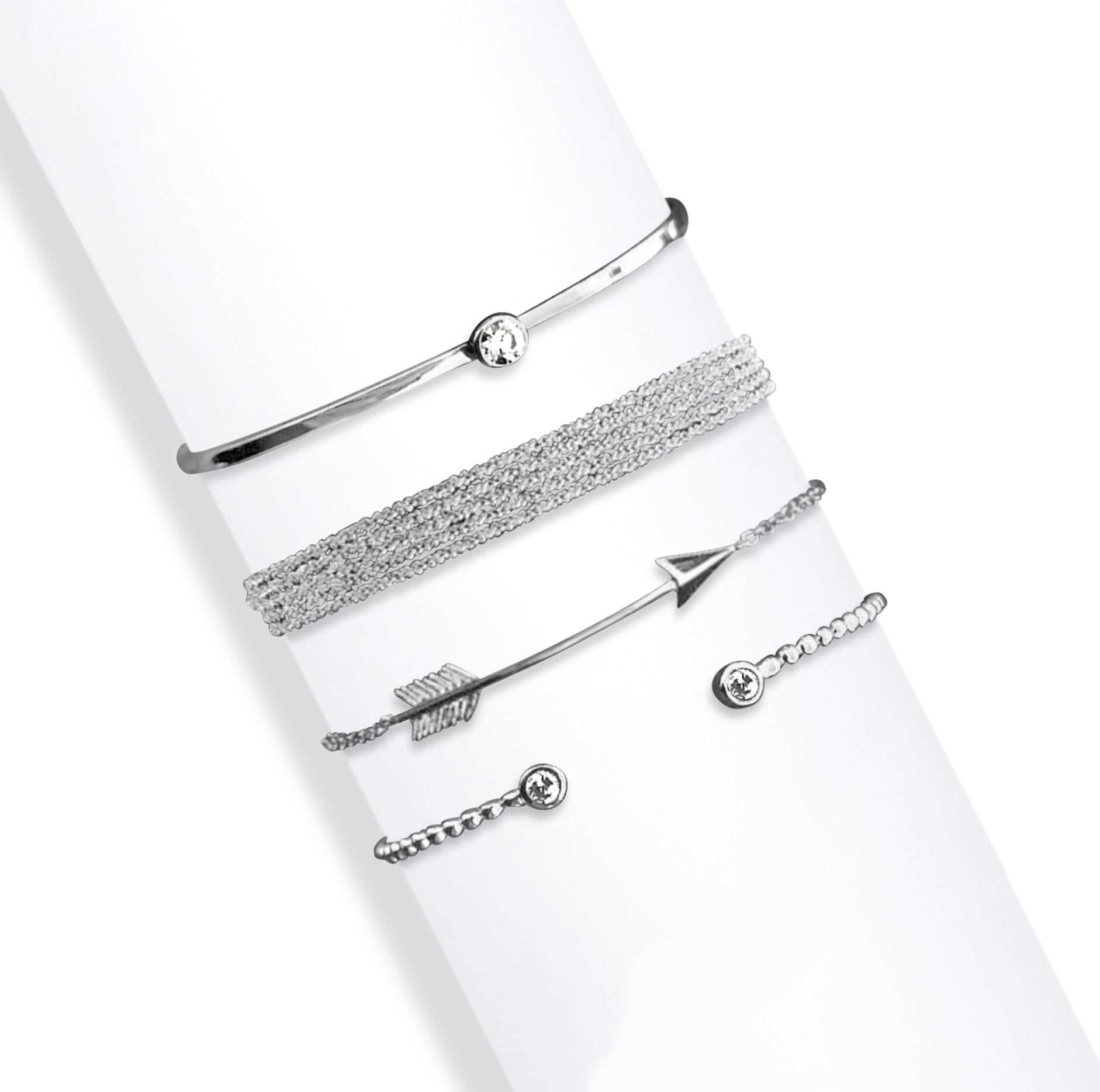callura – Stackable Set of 4 Bracelets & Bangles – made with Swarovski Crystals in Silver Arrow and Bangle