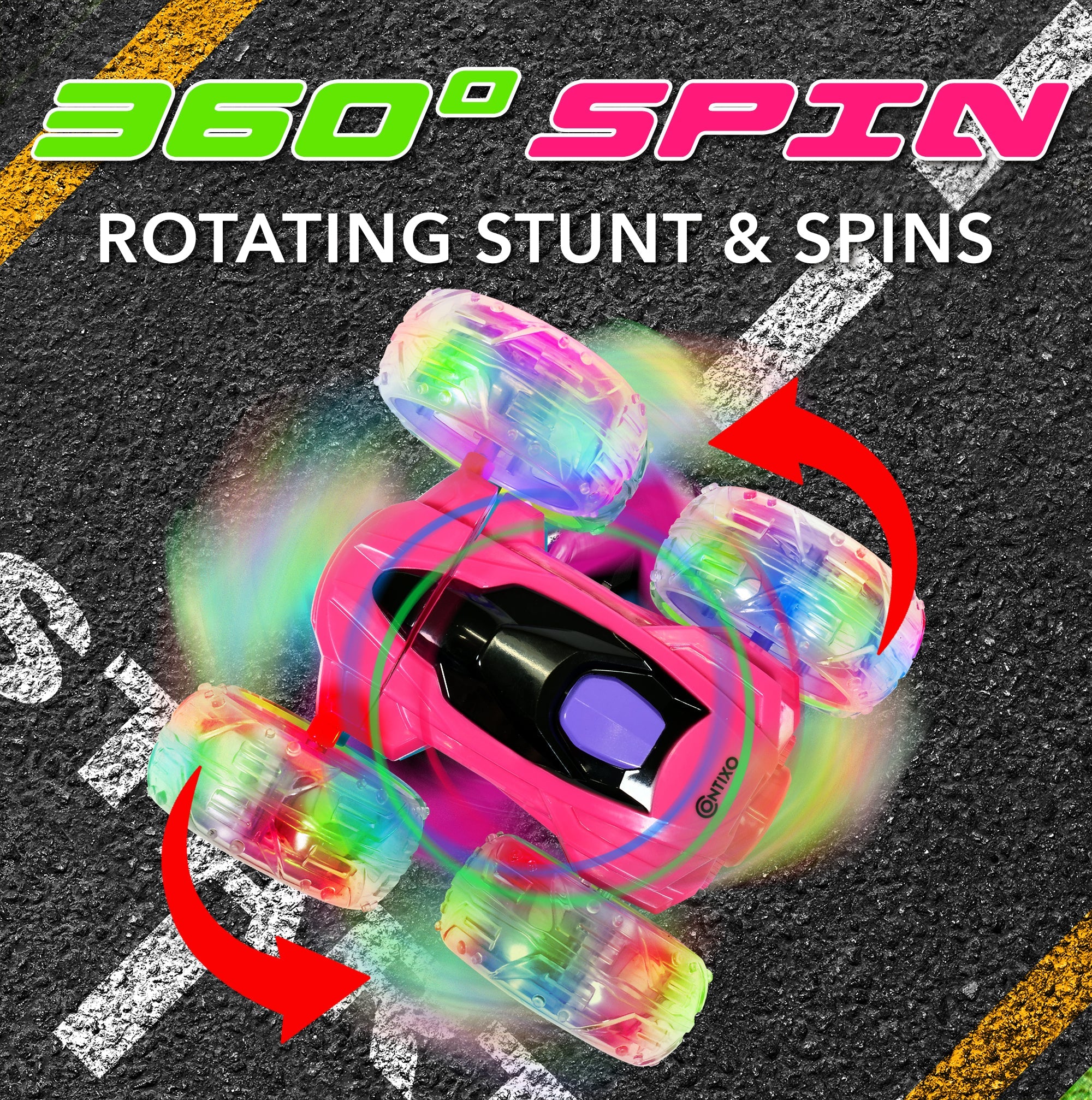 Experience endless thrills with the Contixo RC Stunt Car 4WD-perfect for kids ages 4-12! This double-sided remote control toy delivers high-speed spins. flips. and 360- stunts. sparking excitement and creativity. Designed for indoor and outdoor adventures. it features LED lights. dual motors. and 4-wheel drive for ultimate performance. Ideal for birthdays. holidays. and weekend fun. this stunt car guarantees hours of entertainment.