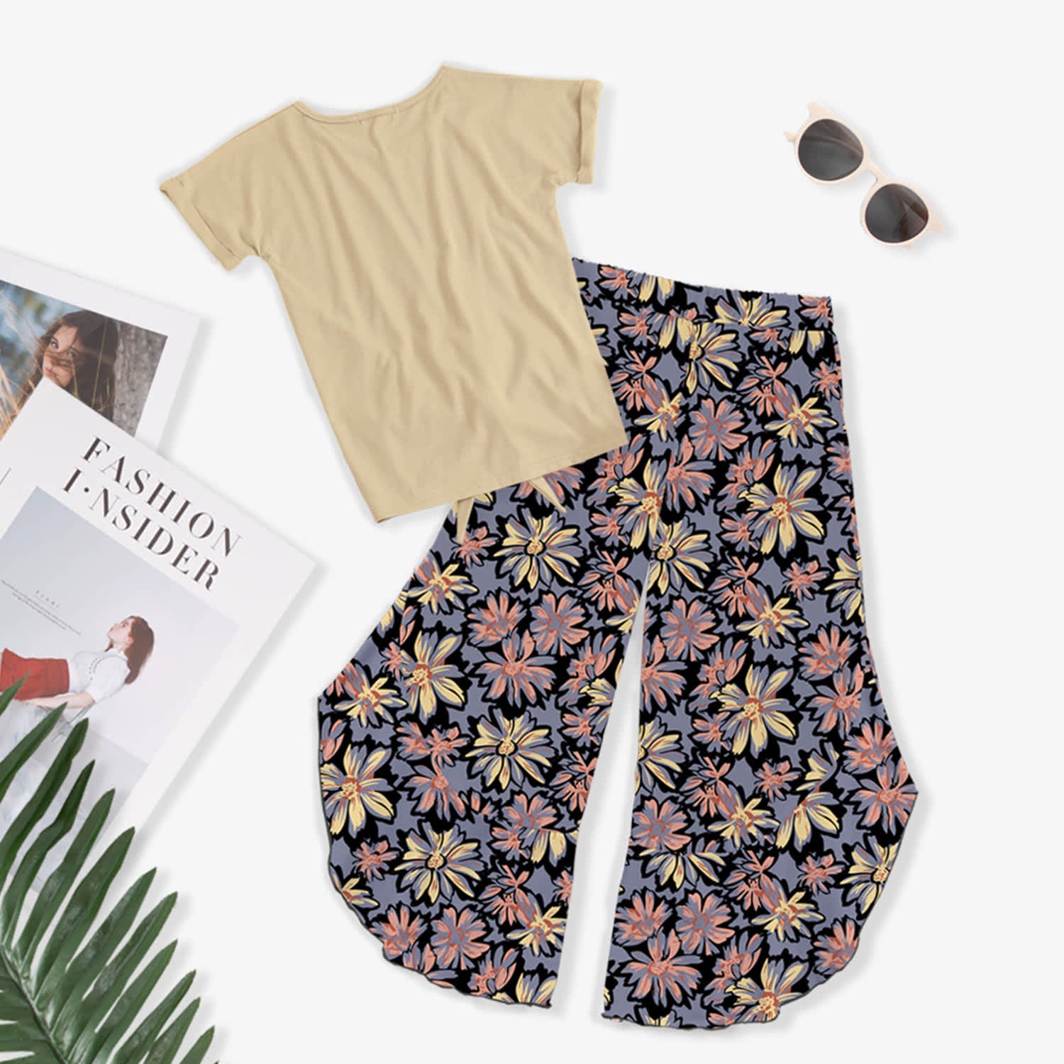 Be the first to review “Cream Floral Peace Knot-Front Top & Floral Print Wide-Leg Pants”