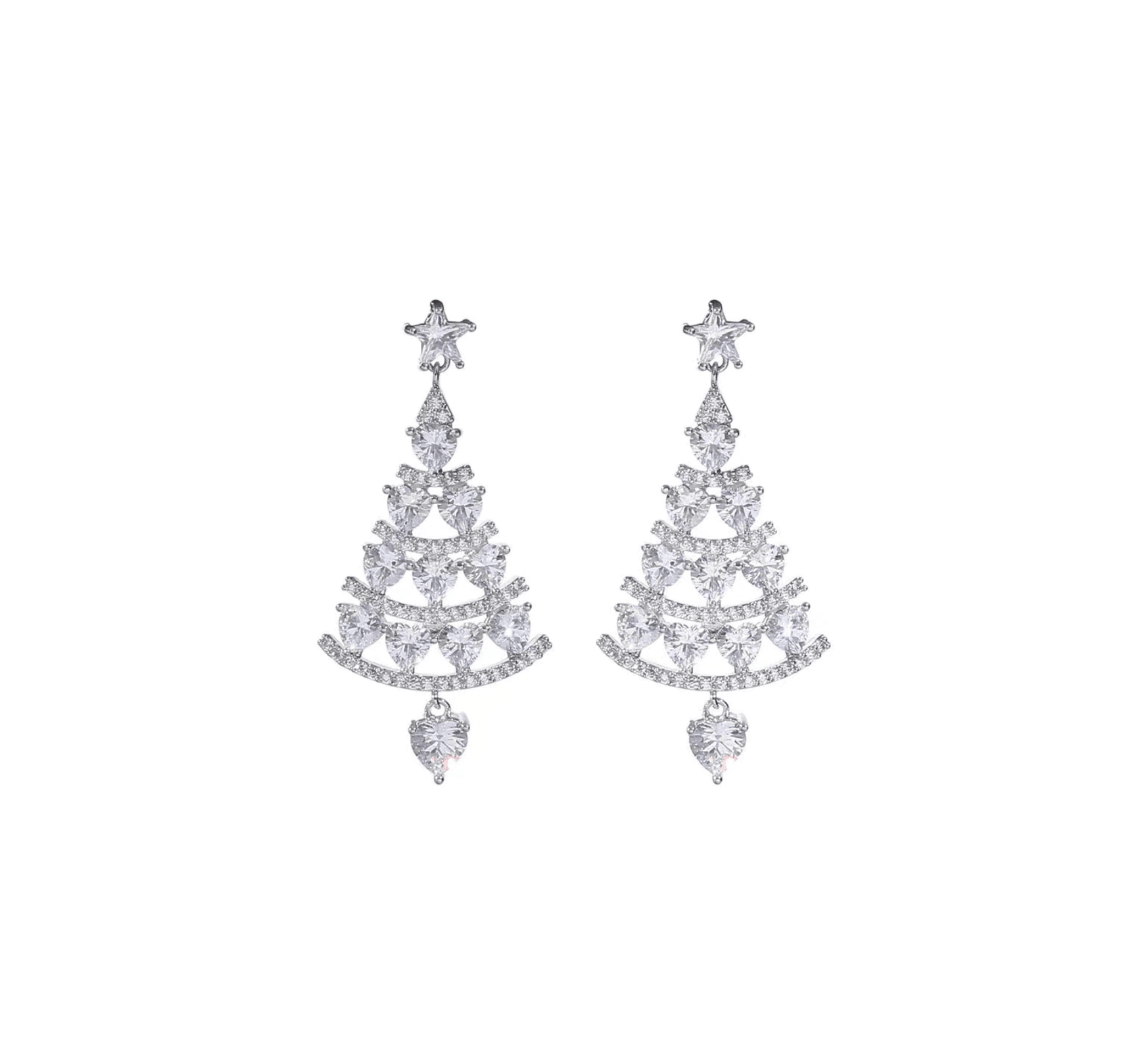 Don’t AsK Clear Crystal Christmas Tree Drop Earrings ?C Festive Holiday Jewellery for Women