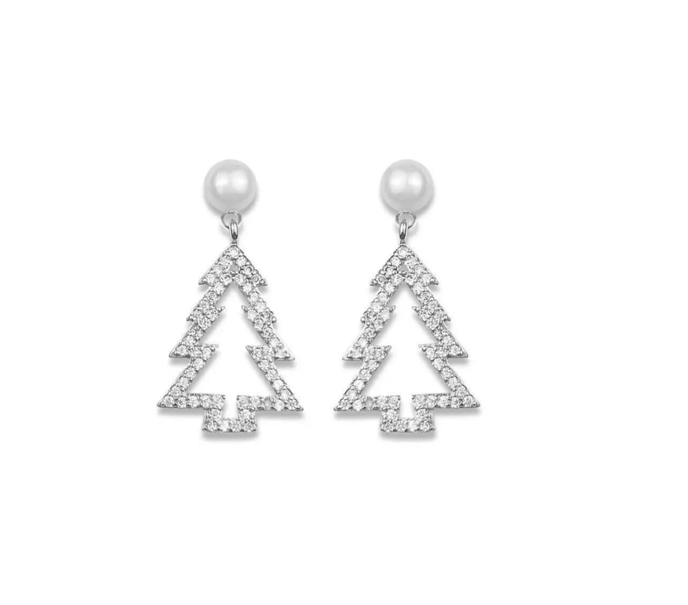 Don’t AsK Crystal Pearl Open Christmas Tree Drop Earrings ?C Festive Holiday Jewellery for Women