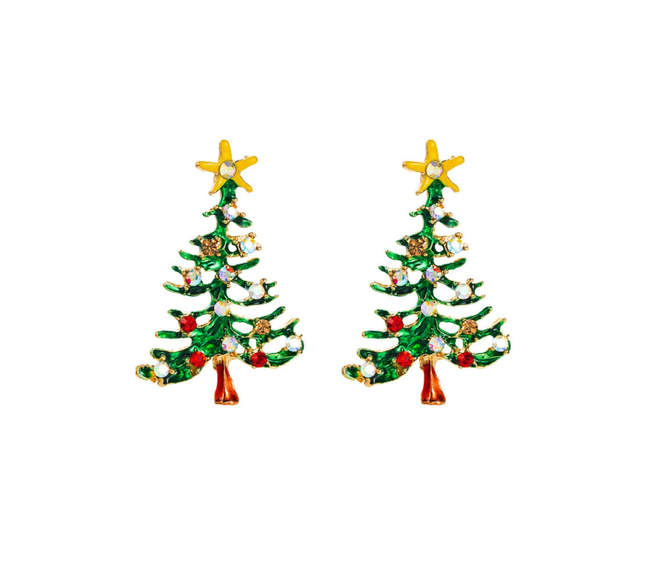 Don’t AsK Green Crystal Christmas Tree Stud Earrings ?C Festive Holiday Jewellery for Women