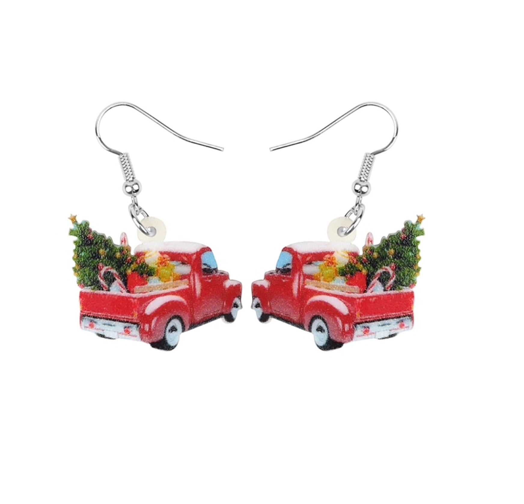 Don’t AsK Red Truck Christmas Tree Drop Earrings ?C Festive Holiday Jewellery for Women