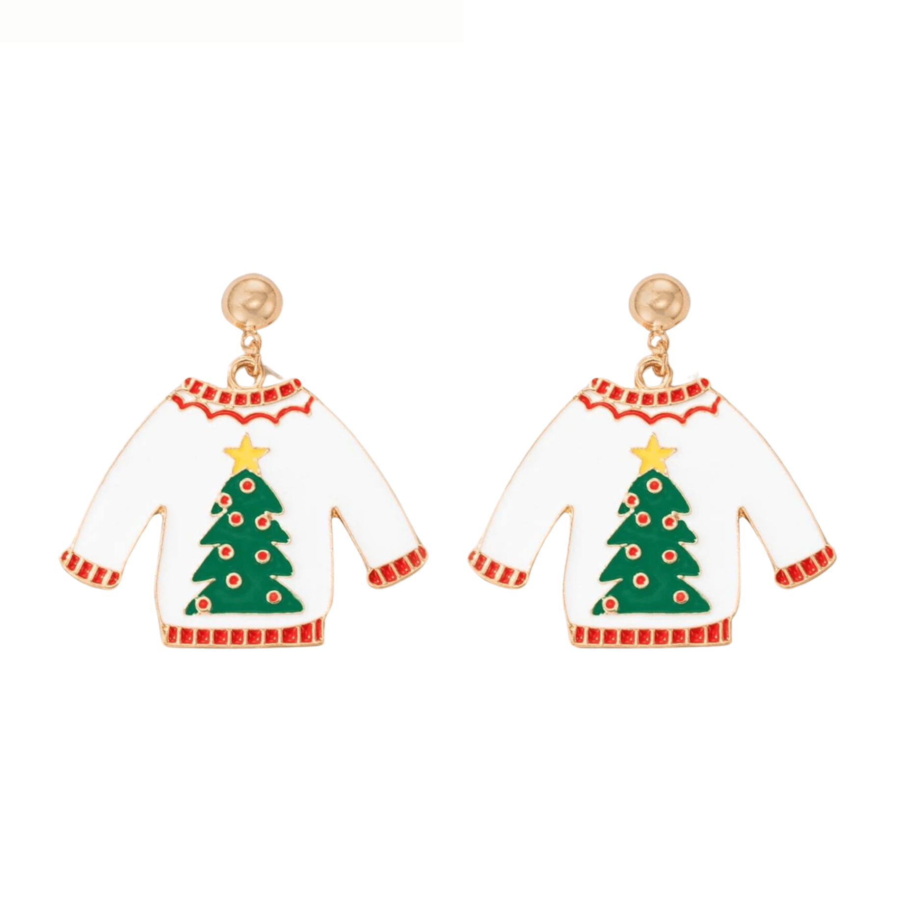 Don’t AsK White Christmas Sweater with Green Tree Drop Earrings ?C Festive Holiday Jewellery for Women