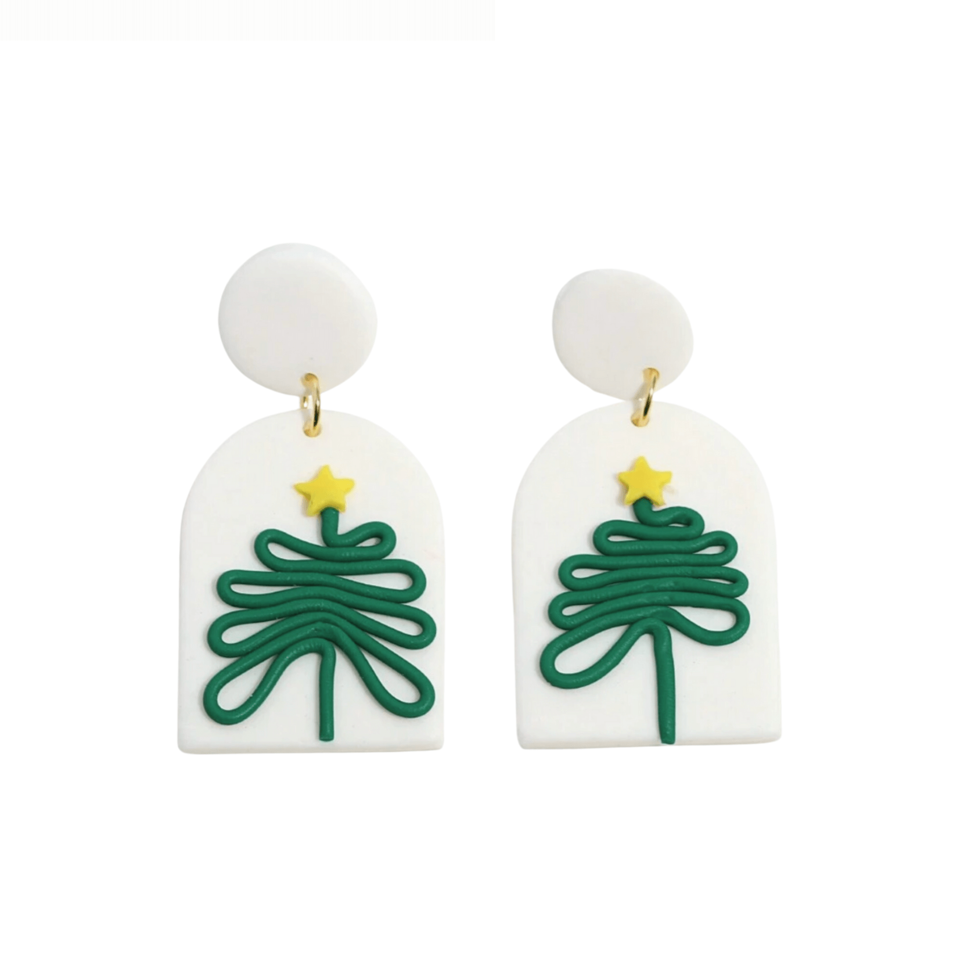 Don’t AsK White Polymer Clay Green Minimalist Christmas Tree Earrings ?C Festive Holiday Jewellery for Women