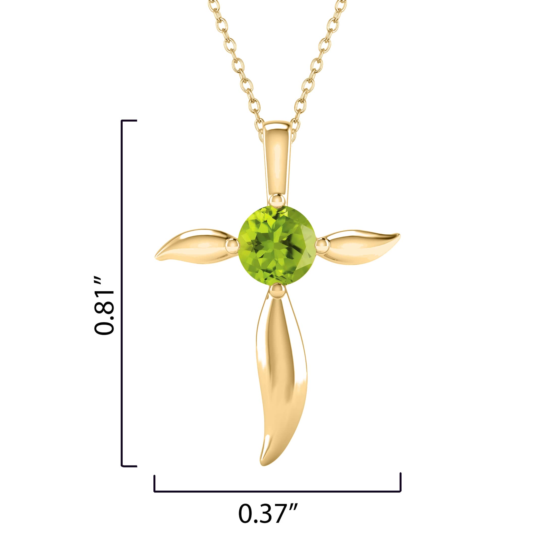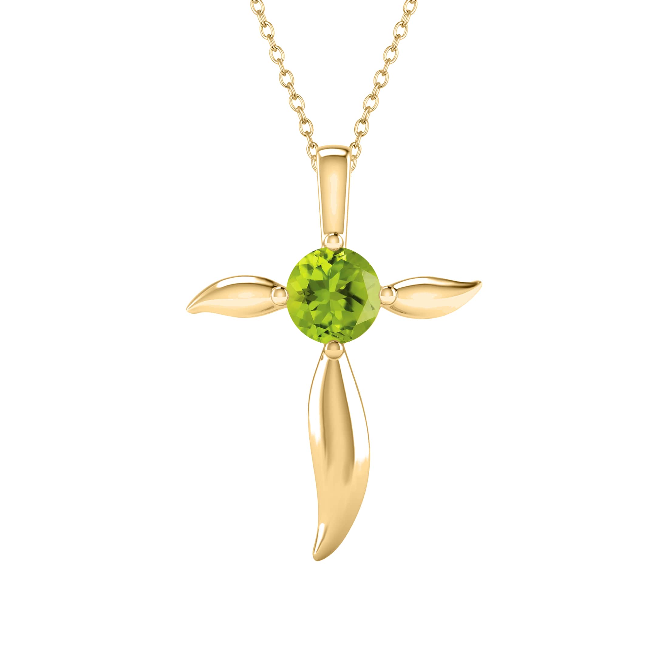 Gold Over Sterling Silver Round Shape Natural Peridot Cross Pendant with 18 Cable Chain