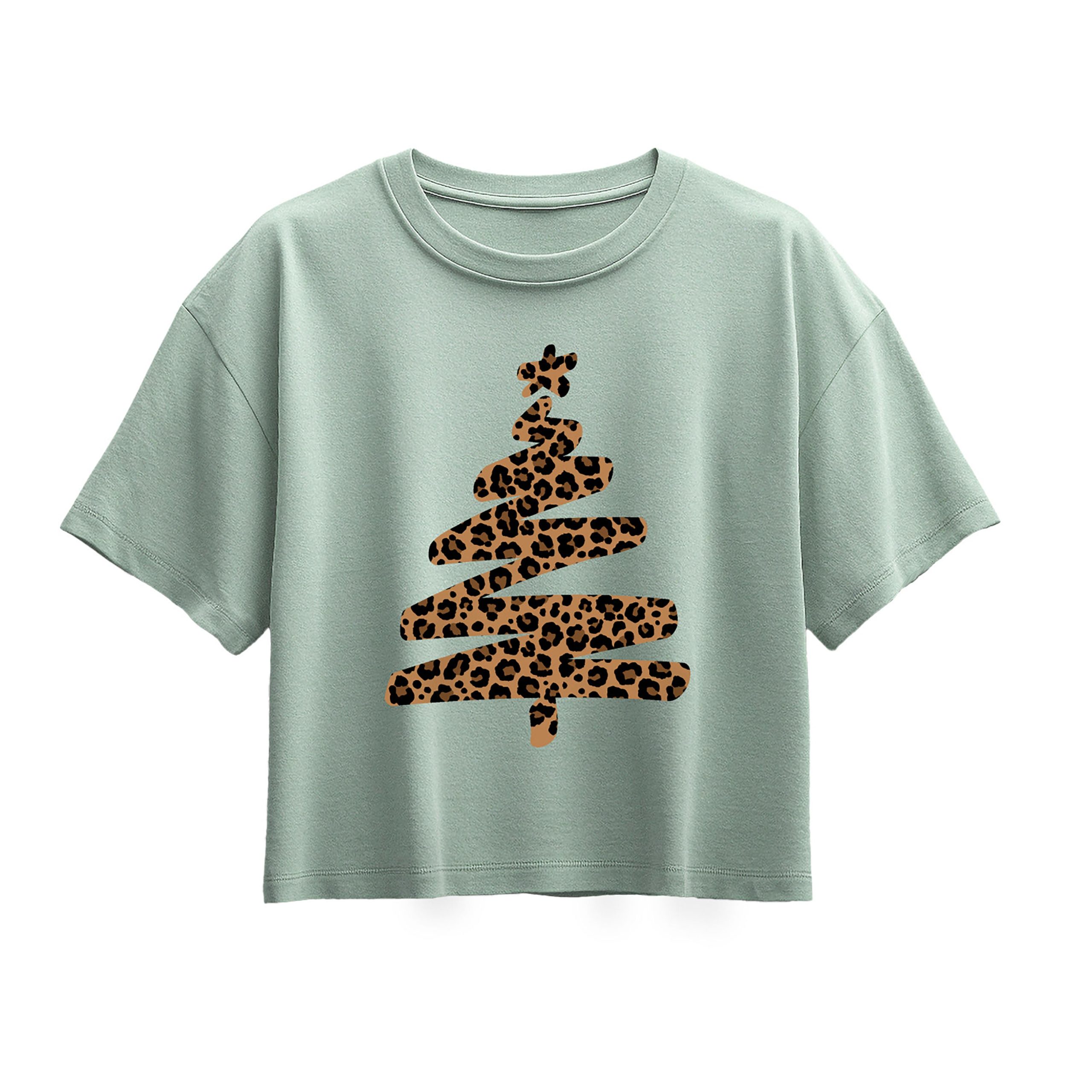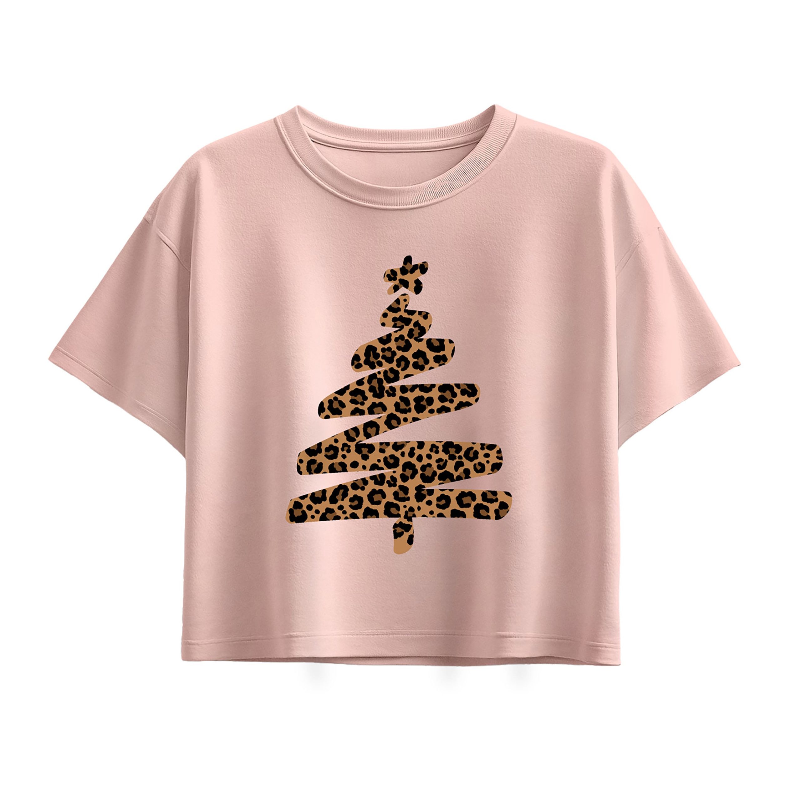Instant Message – Leopard Print Tree – Youth Girl Short Sleeve Boxy Tee