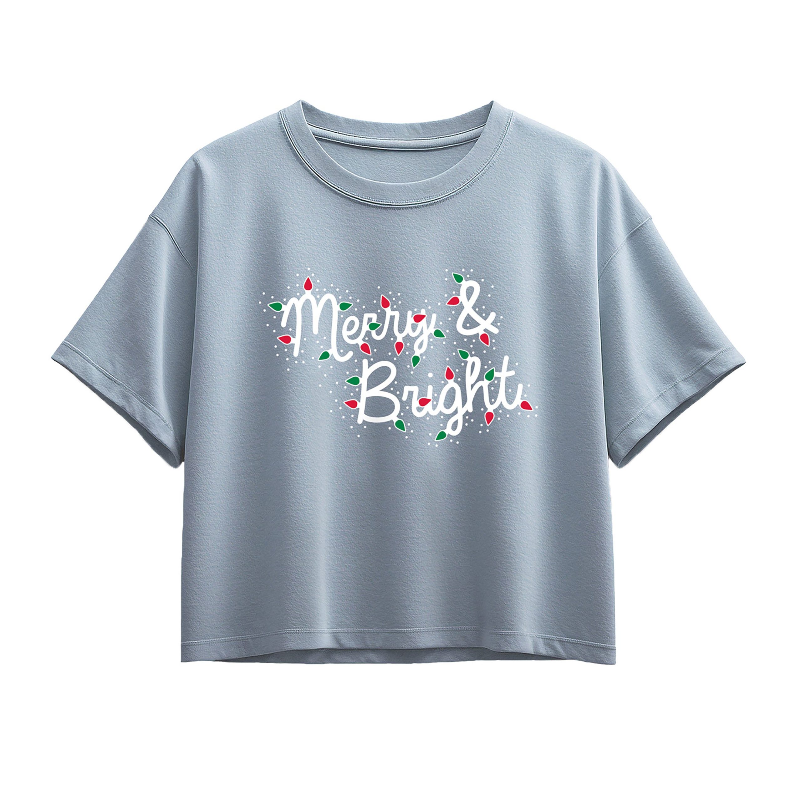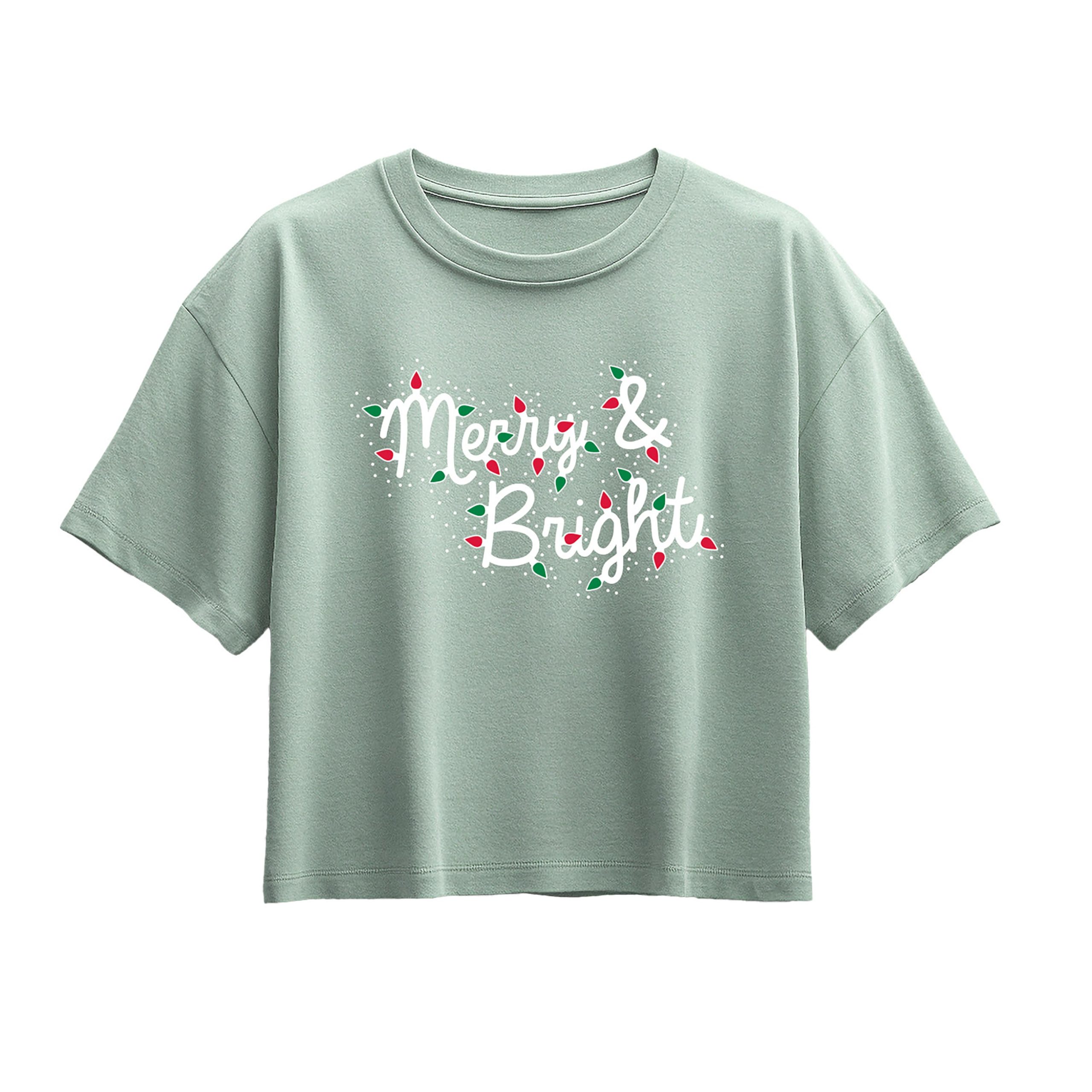 Instant Message – Merry And Bright Lights – Youth Girl Short Sleeve Boxy Tee