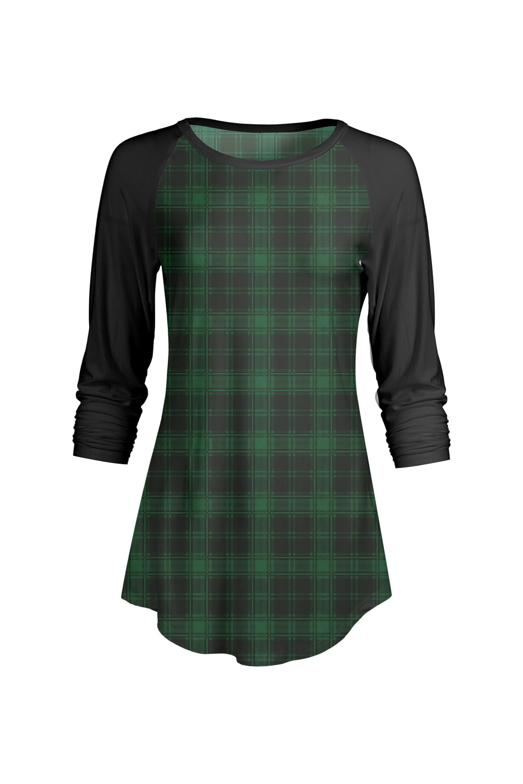 Lily by Firmiana Women’s ¾ Sleeve Scoop Neck Tunic Top Green Plaid Tunic