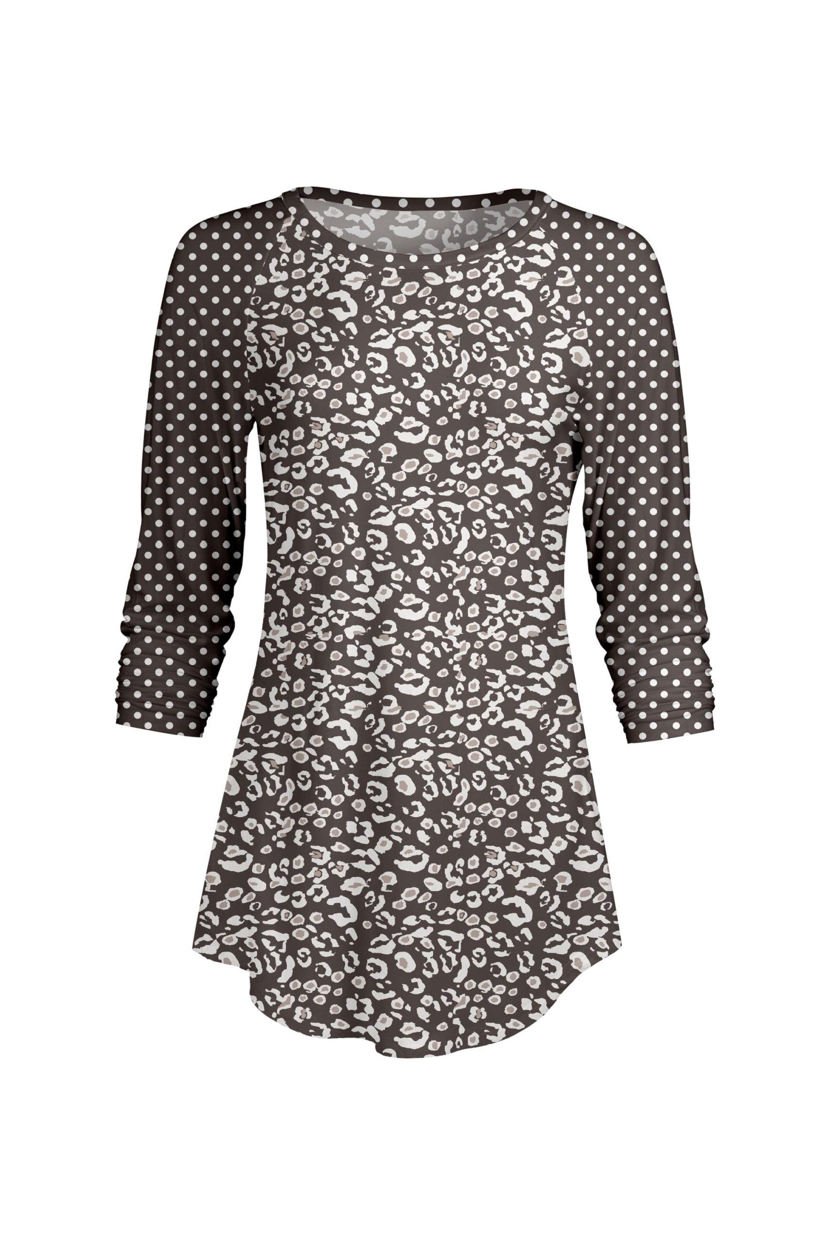 Lily by Firmiana Women’s ¾ Sleeve Scoop Neck Tunic Top Grey and White Leopardal