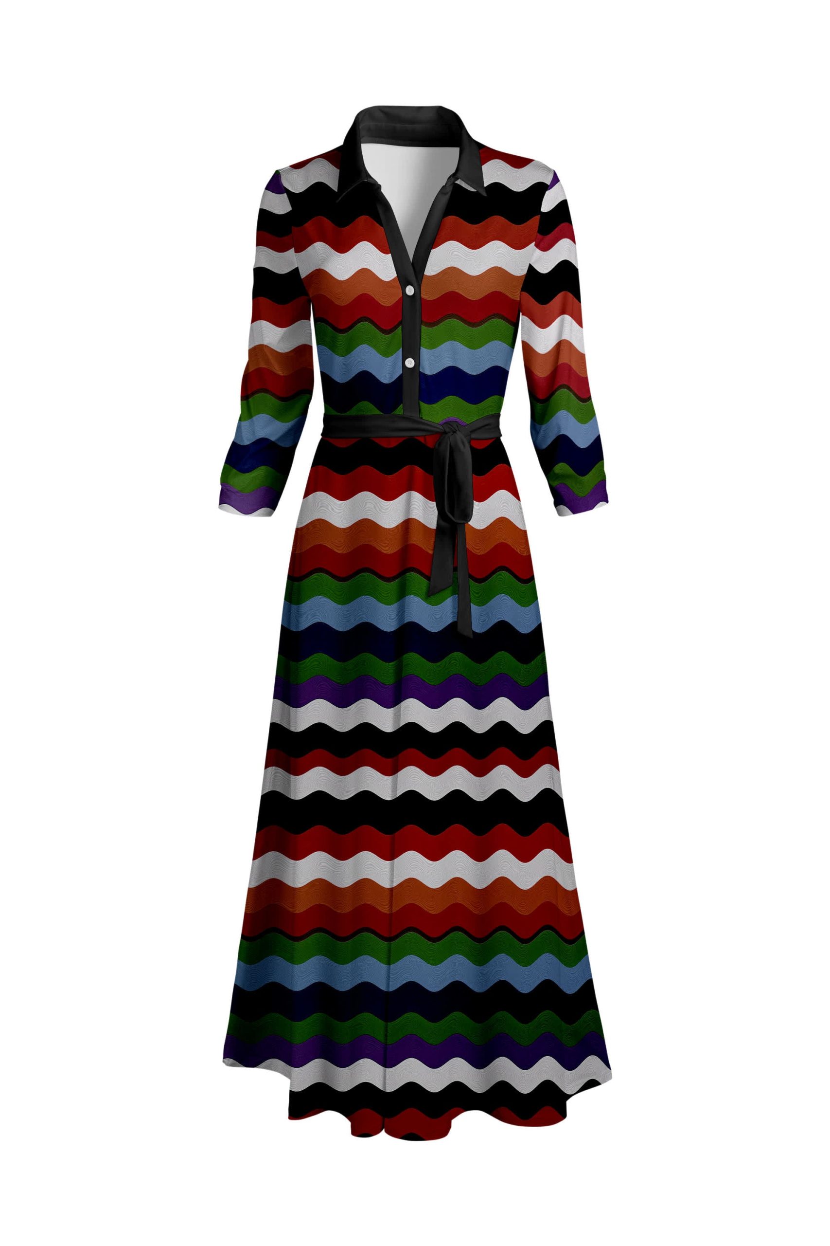 Lily by Firmiana Women’s Long Sleeve Collared Maxi Dress with Tie Multicolor Chevron Stripe