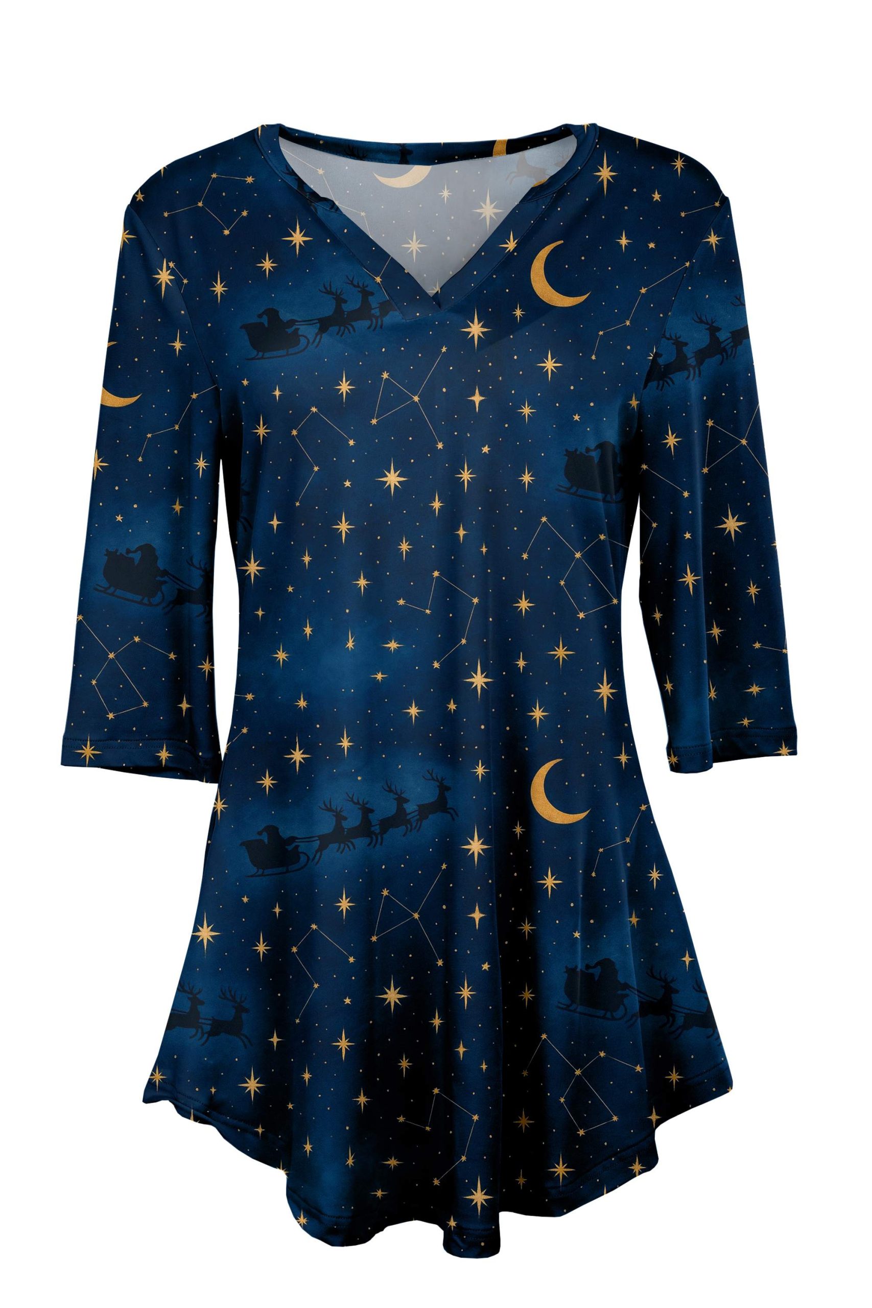 Lily by Firmiana Women’s Navy Night Sky Moon and Stars Print