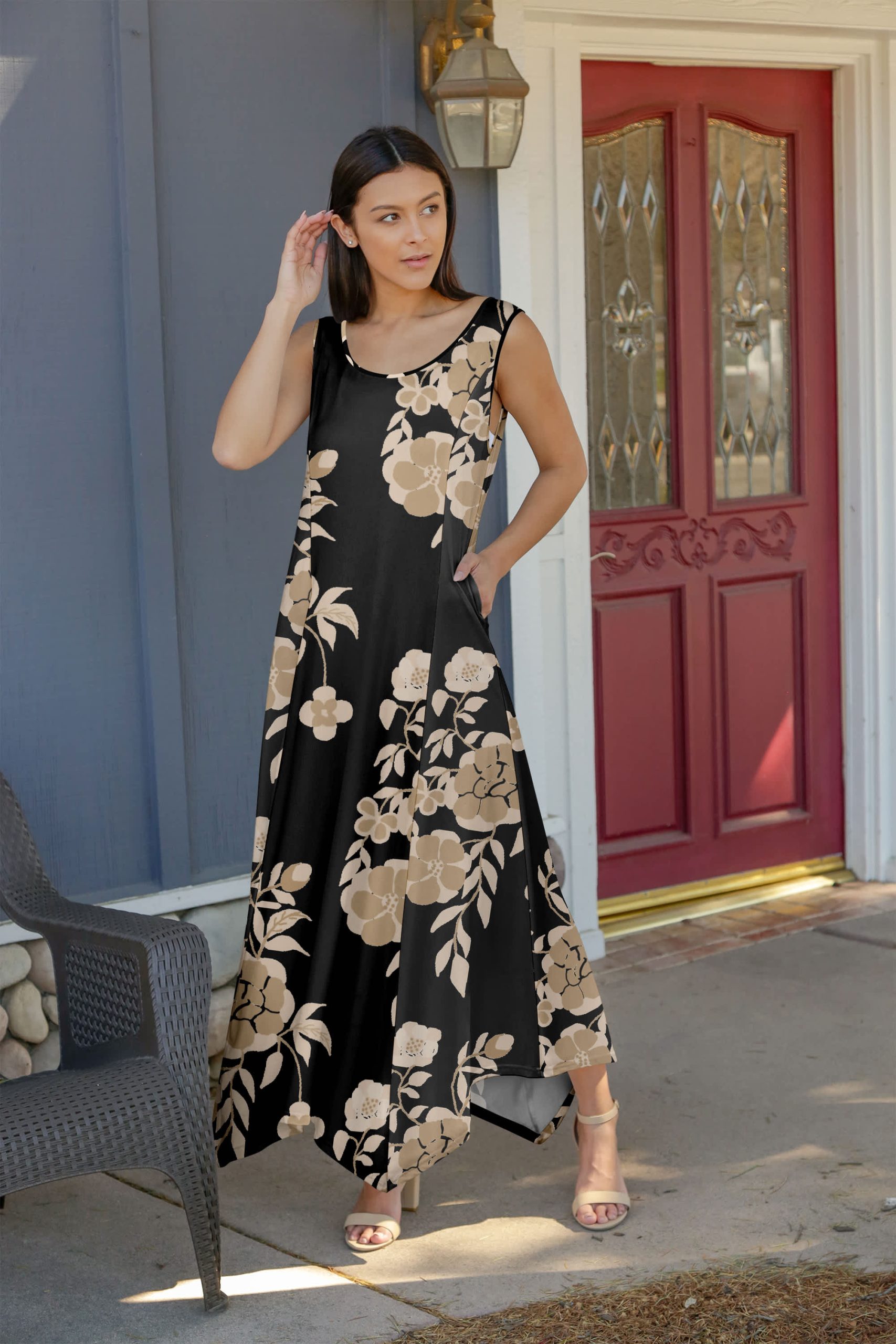 Lily by Firmiana Women’s Sleeveless Fishtail Maxi Dress White & Black Brushstroke Print