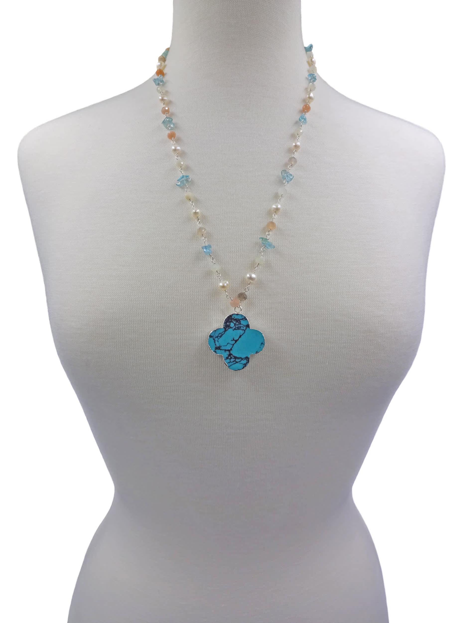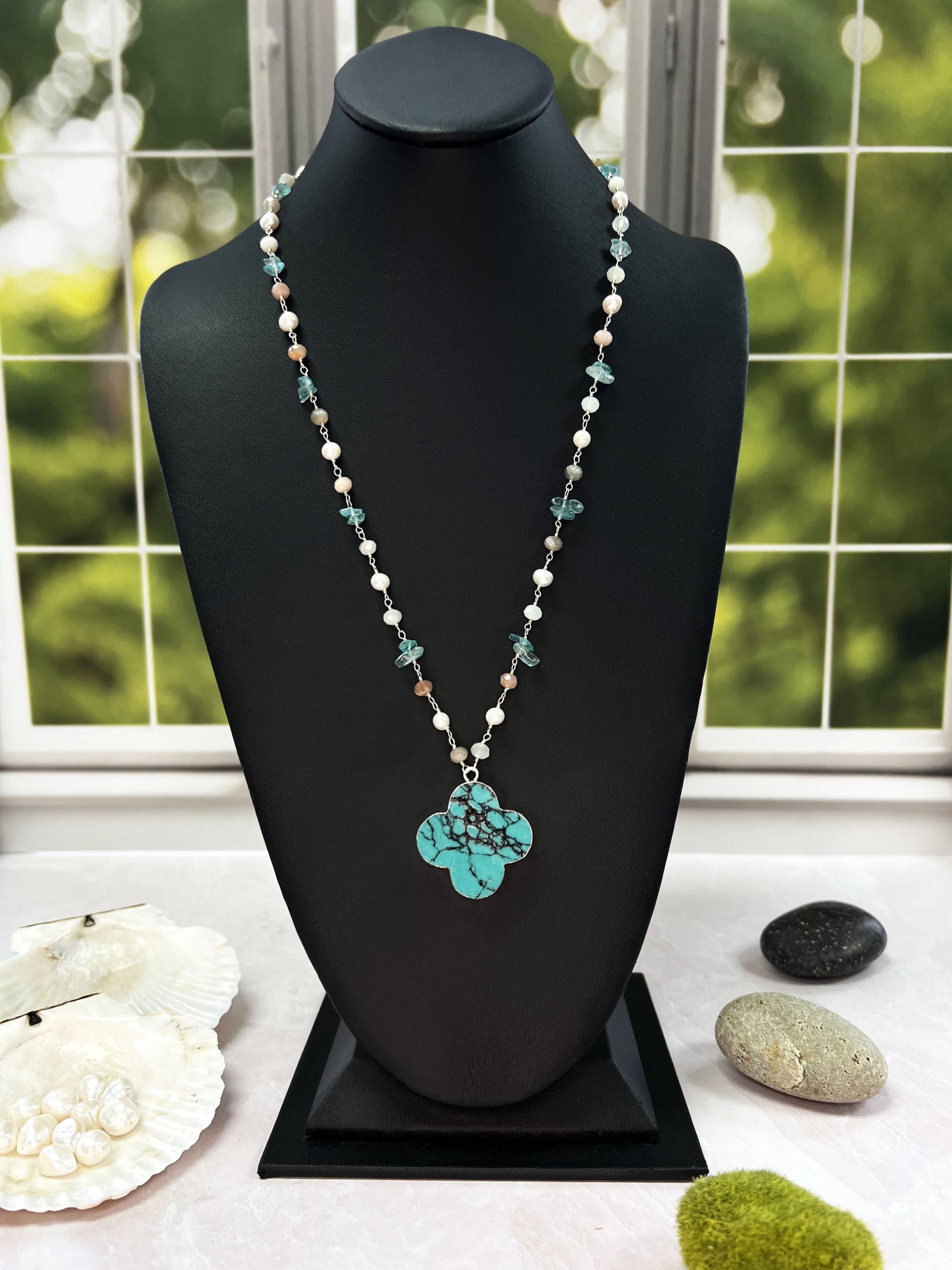MGR Apatite Cultured Mix Media Necklace with a Genuine Snake Skin Jasper Pendant.