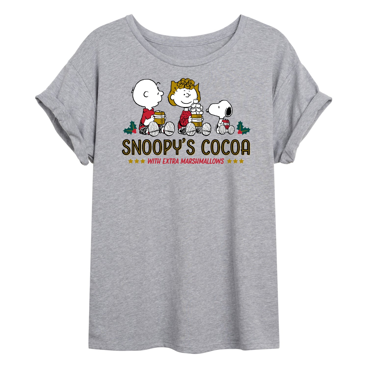 Peanuts – Snoopy’s Cocoa – Women’s Oversized T-Shirt – From the best-loved comic strip in history comes officially licensed PEANUTS apparel for fans everywhere. Show your love for Charlie Brown. Snoopy. Woodstock. Lucy. Linus. Pigpen and the whole gang. Copyright Peanuts.