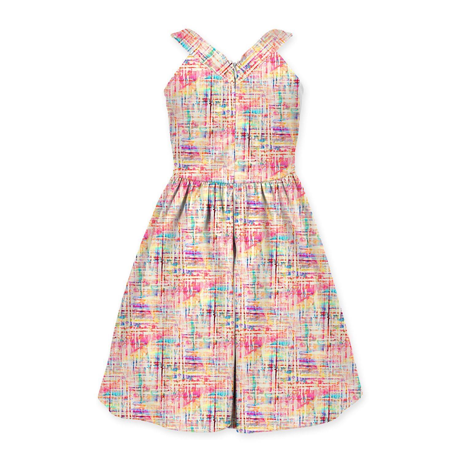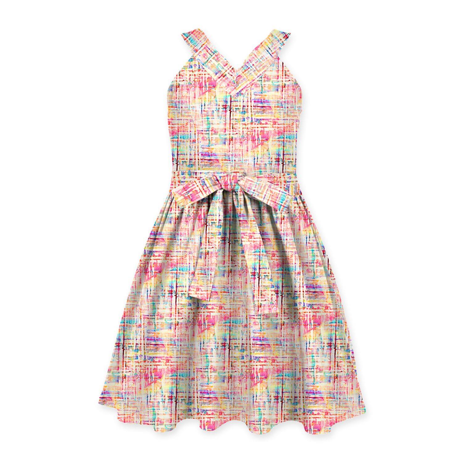 Pink Watercolor Abstract Print Bow-Belted Sleeveless Dress