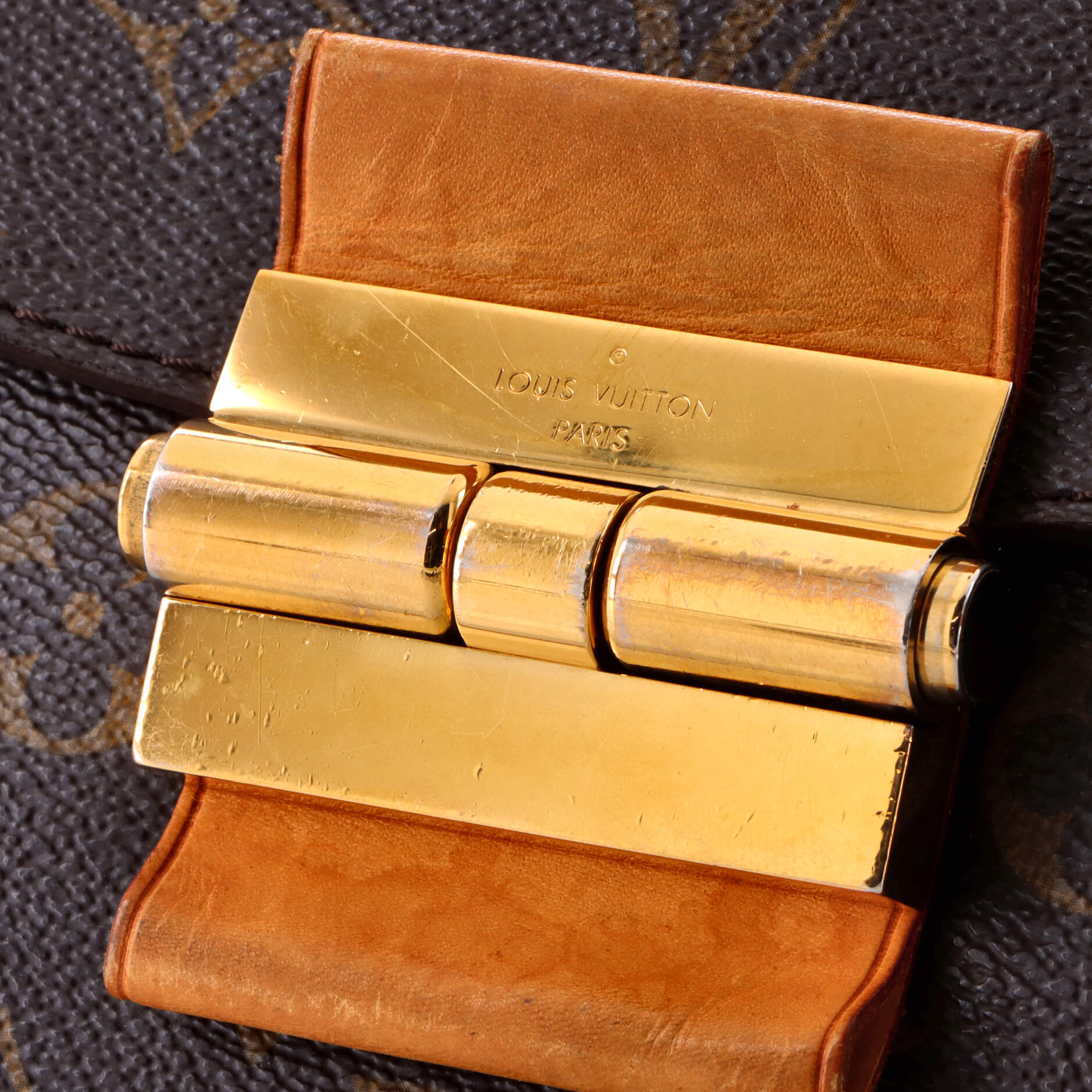 Condition: Good. Exterior: corner wear. edge wear. creases. scuffs. discoloration. cracking | Handles/Straps: creases. scuffs. discoloration. cracking | Interior: moderate odor. discoloration. scuffs. stains | Hardware: scratches. tarnished