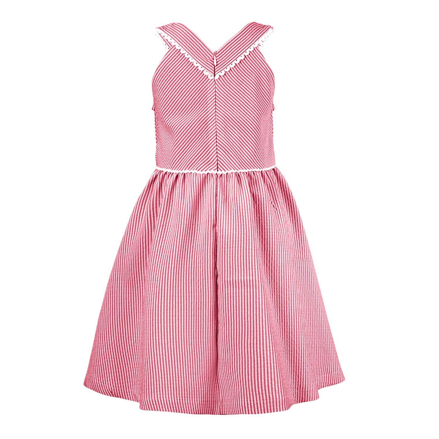 Red & White Stripe Bow-Accent Sleeveless A-Line Dress