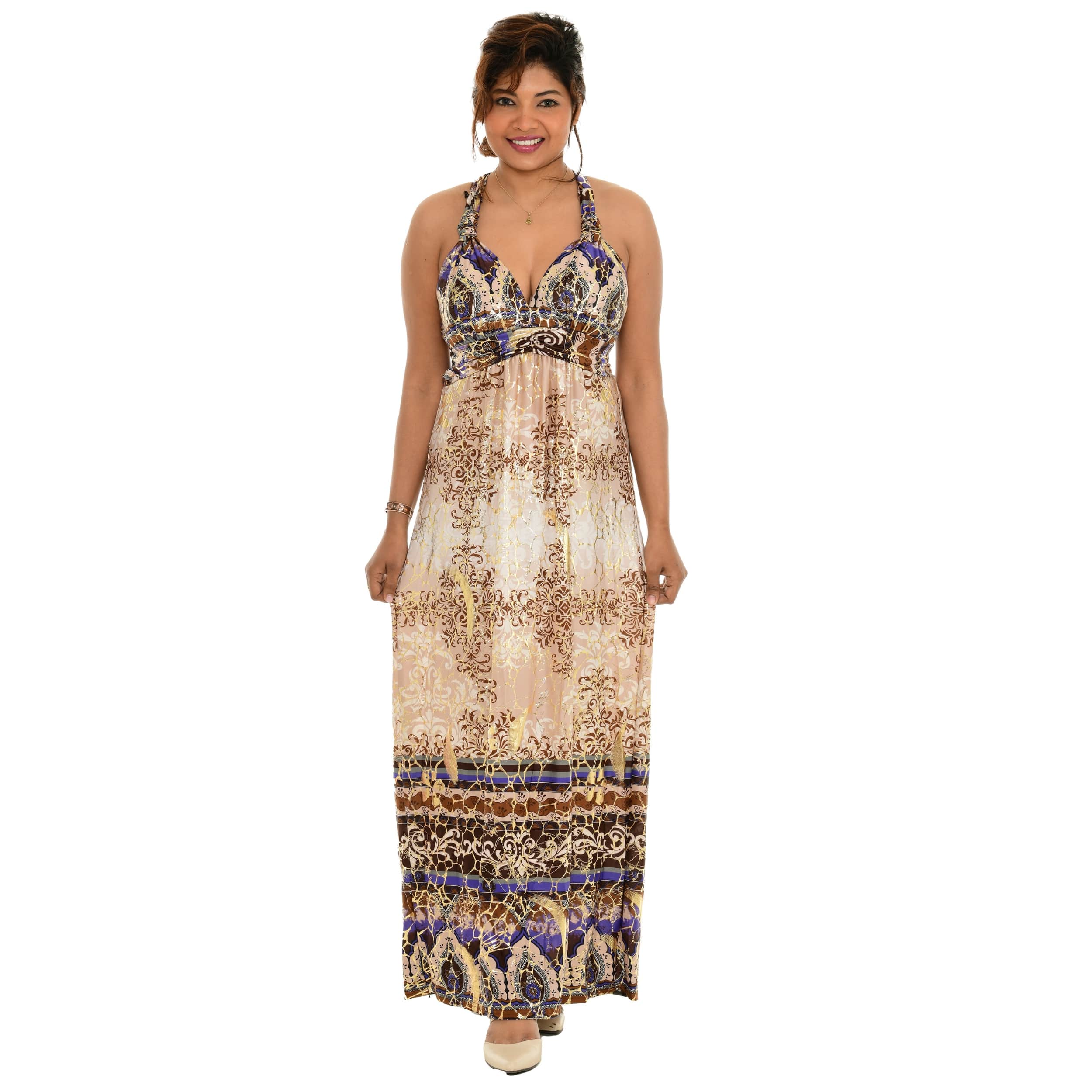 Shoreline Wear Abstract Gold Foil Halter Maxi Dress