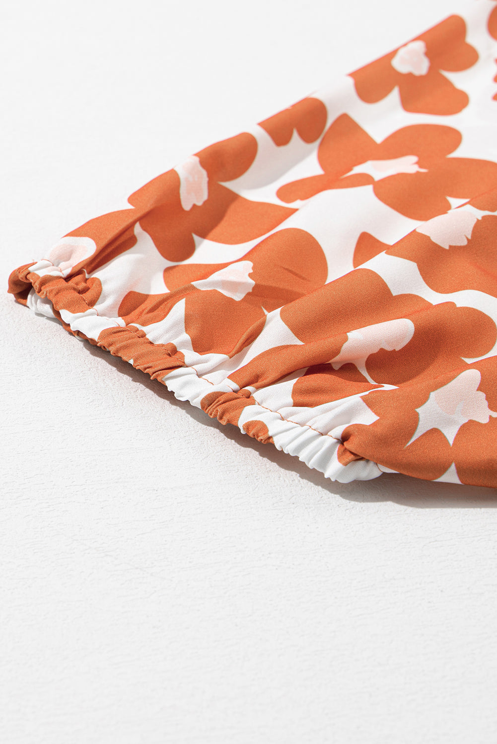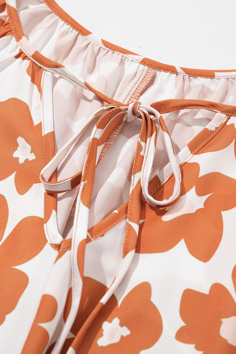 Sky Plus Size Floral Print Drawstring V Neck Short Sleeve Blouse by Threaded Pear