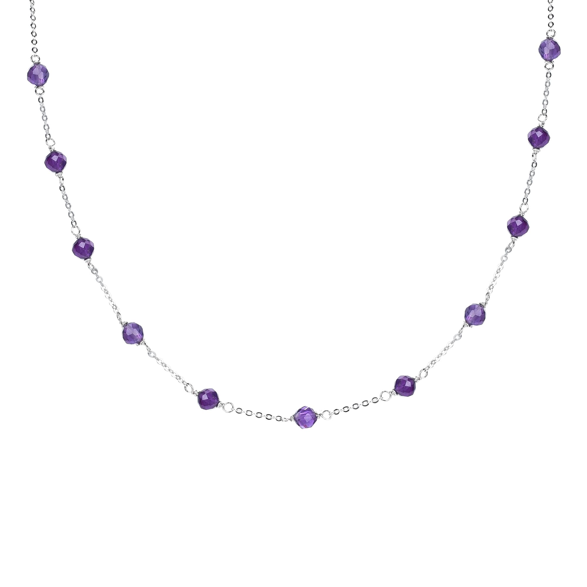 V3 Jewelry Natural Amethyst Sterling Silver Beaded Station Necklace